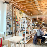Upon entering, you're greeted by a bright, cheerful space adorned with books and goods that invite exploration. Modern General thoughtfully provides an array of utilities: delivery, takeout, outdoor seating, and even dog-friendly options. It's simply the perfect spot for families, friends, and furry companions to gather, savoring each moment.